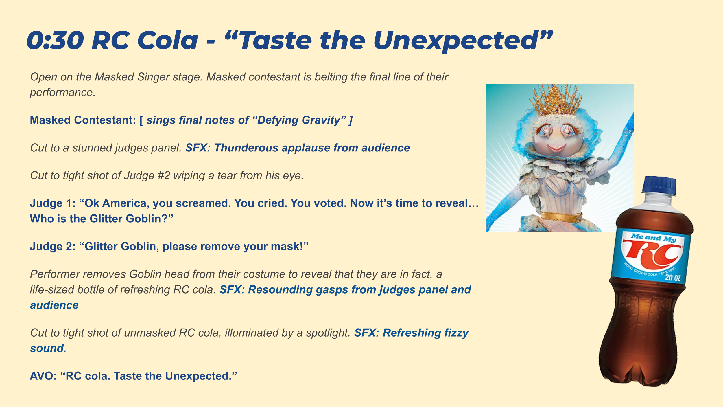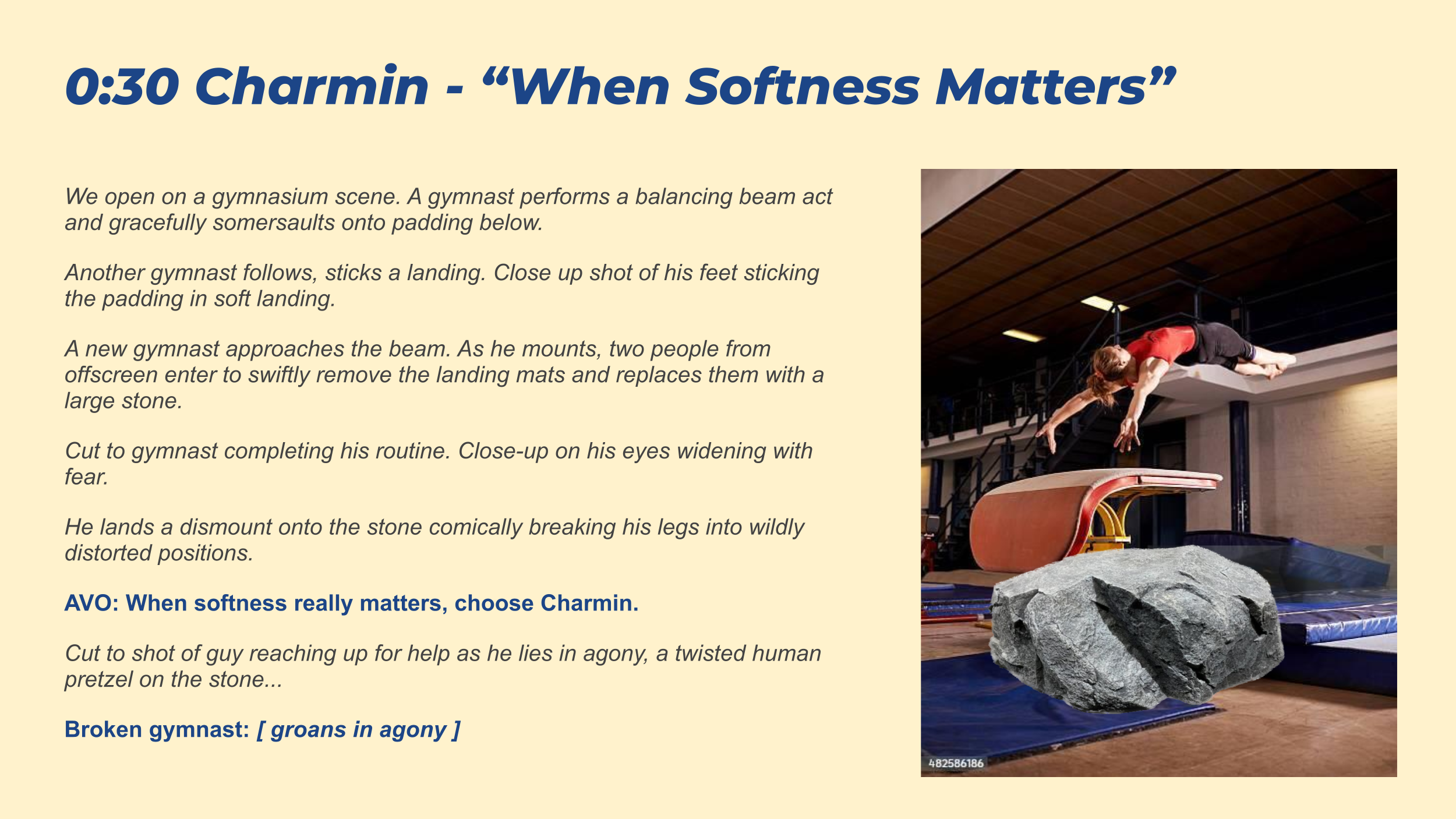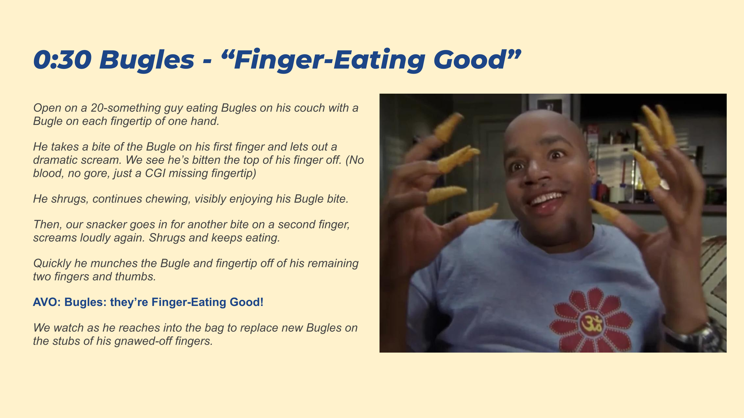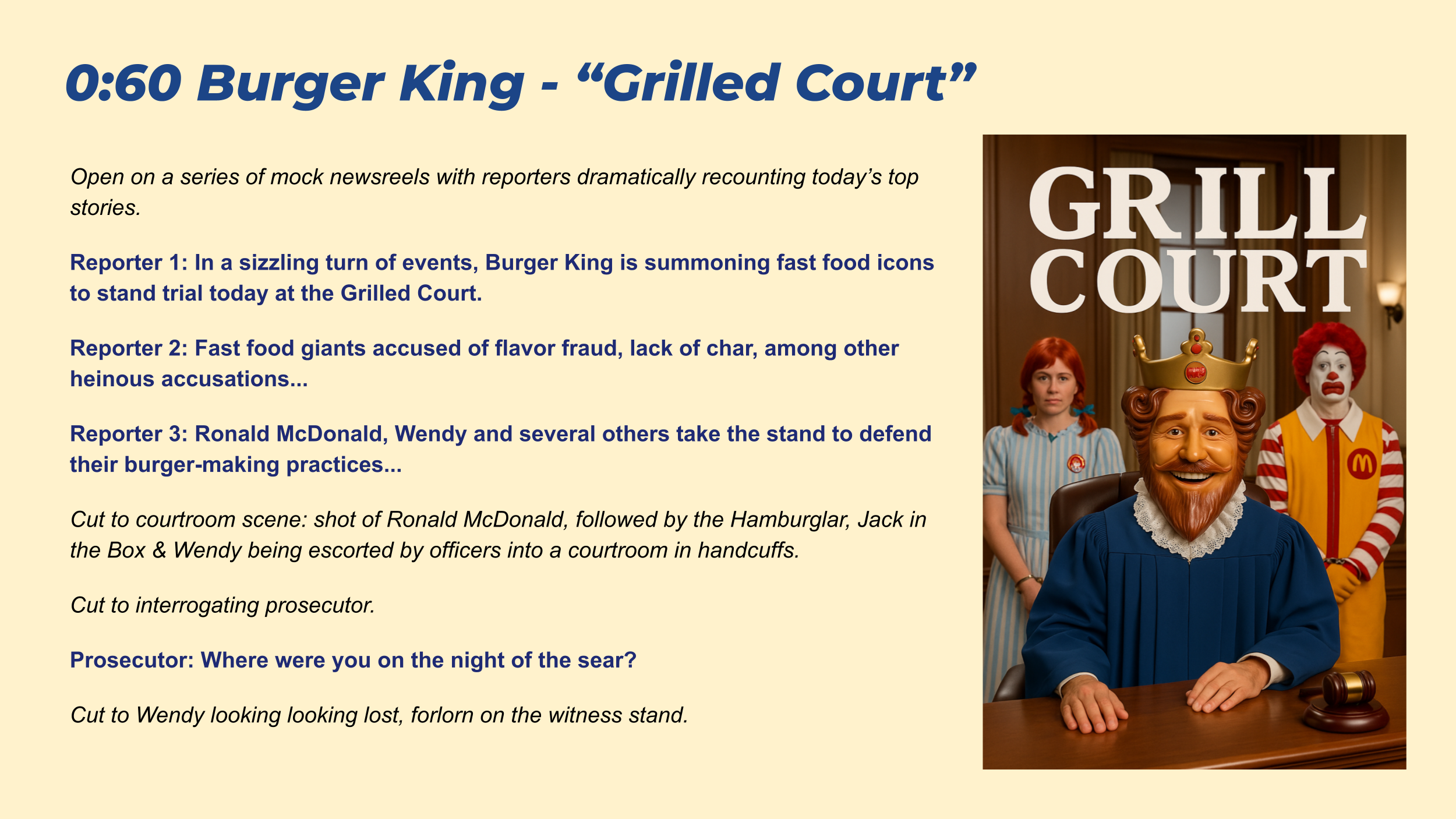 *All scripts written for the screen in 0:30 or 0:60 format.