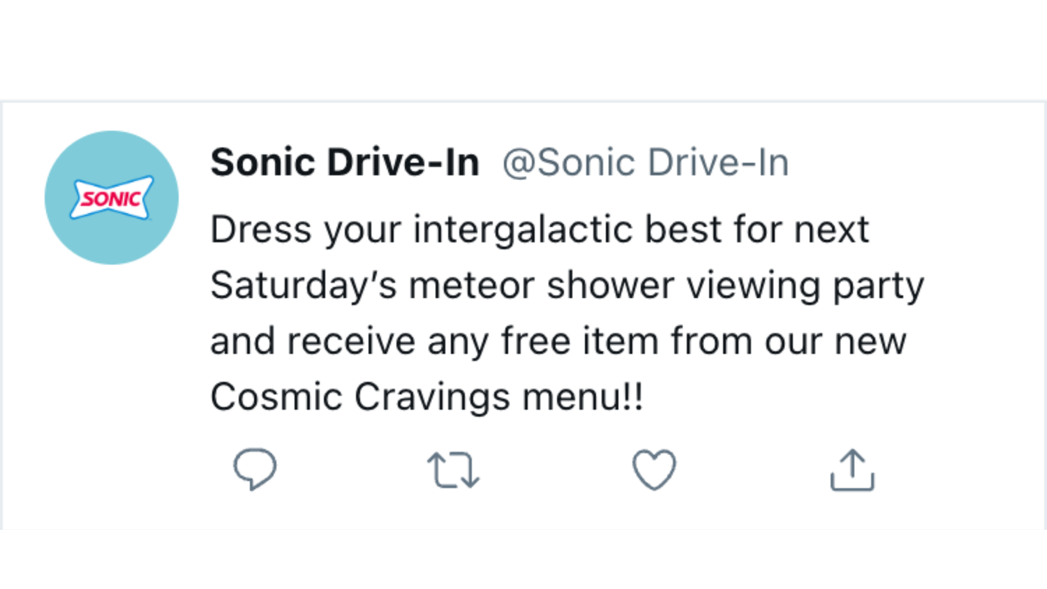 But Sonic doesn’t fear the unknown. They see an opportunity to tap into an entirely new customer base. And it all starts with them joining the conspiracy chat on socials.