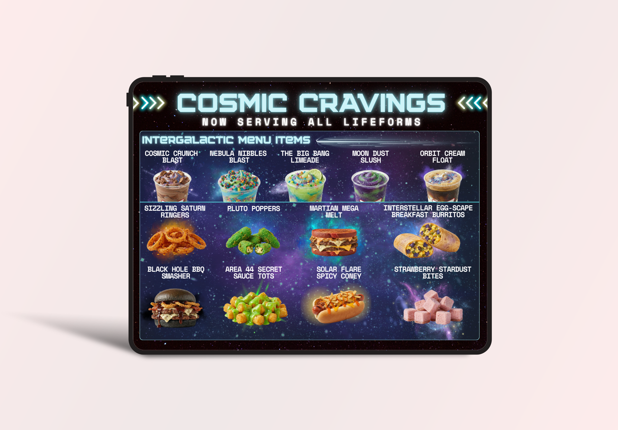 We’ll even drop a BRAND NEW menu designed for otherworldly tastebuds. And humans, too of course :)