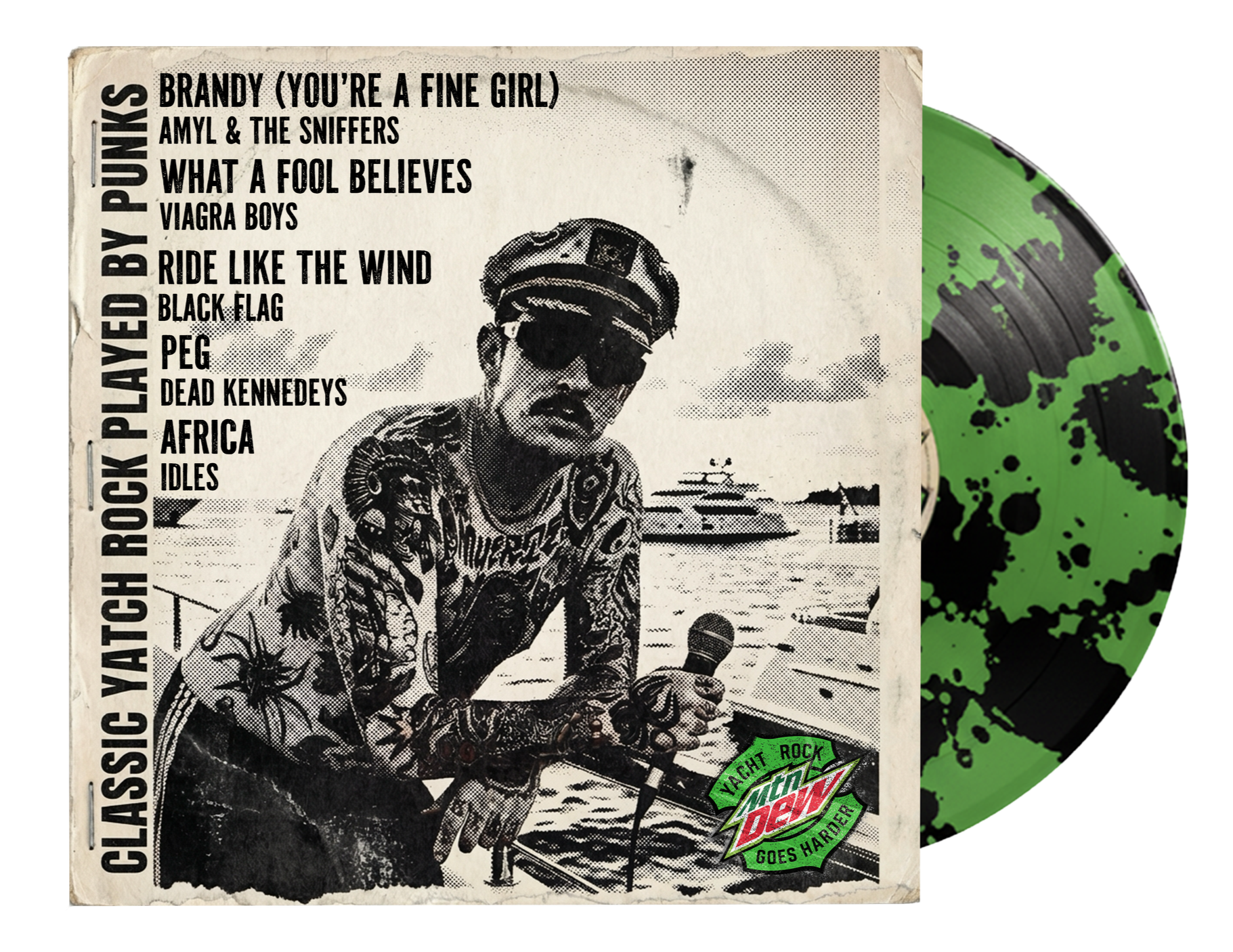 Then, to prove that anything can go harder when Hard Dew gets involved- we’ll release a special-pressed vinyl collection of yacht rock classics all covered by modern punk bands. Dad rock rocks harder with Dew.