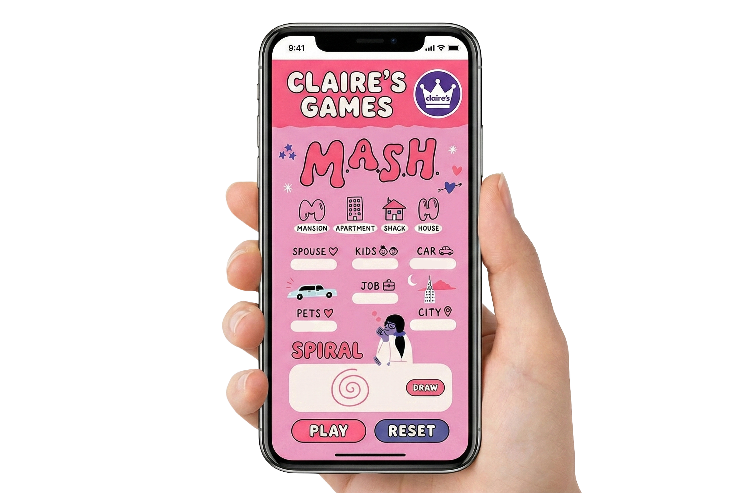 And on the app store, we’ll introduce Claire’s Games- a way to keep kids off of social media while still staying connected through digital versions of old-school playground games.